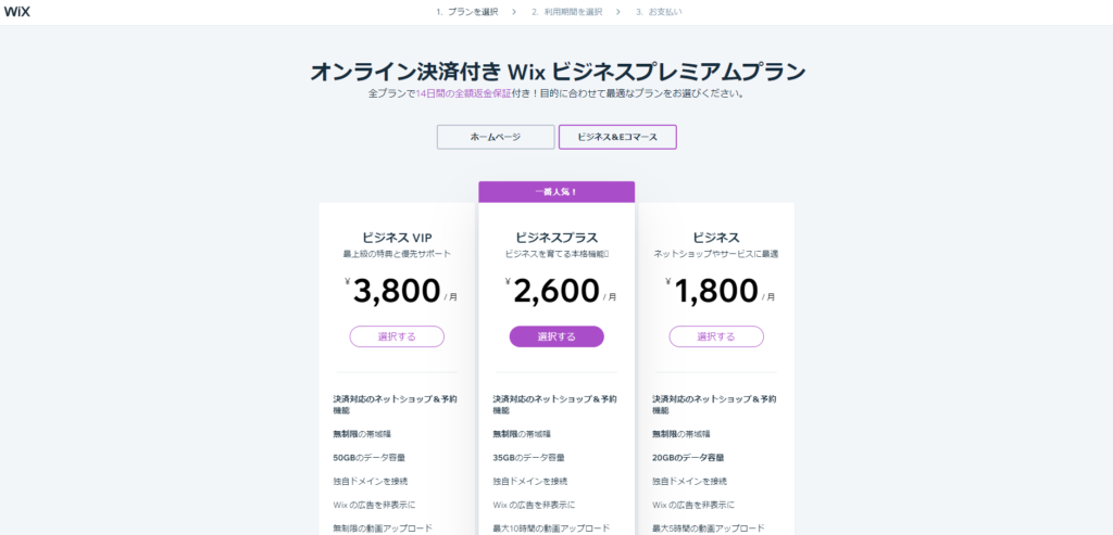 wixはこんな感じで何個か選択していくだけで、自動的にサイトが作られます。